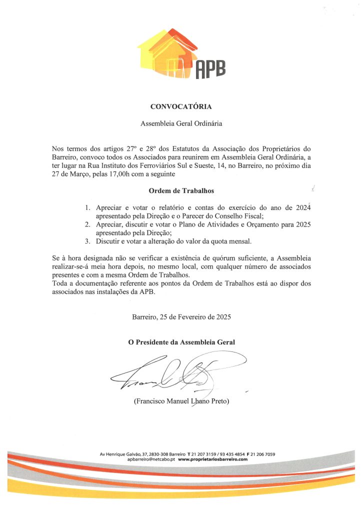 A Associação dos Proprietários do Barreiro é uma associação de direito privado, sem fins lucrativos, fundada em 1932 com o objetivo de preservar e rentabilizar a propriedade imobiliária.